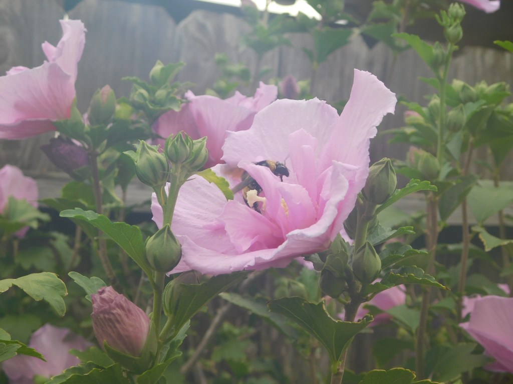 Here is a bumblebee in the Rose of Sharon Hibiscus.