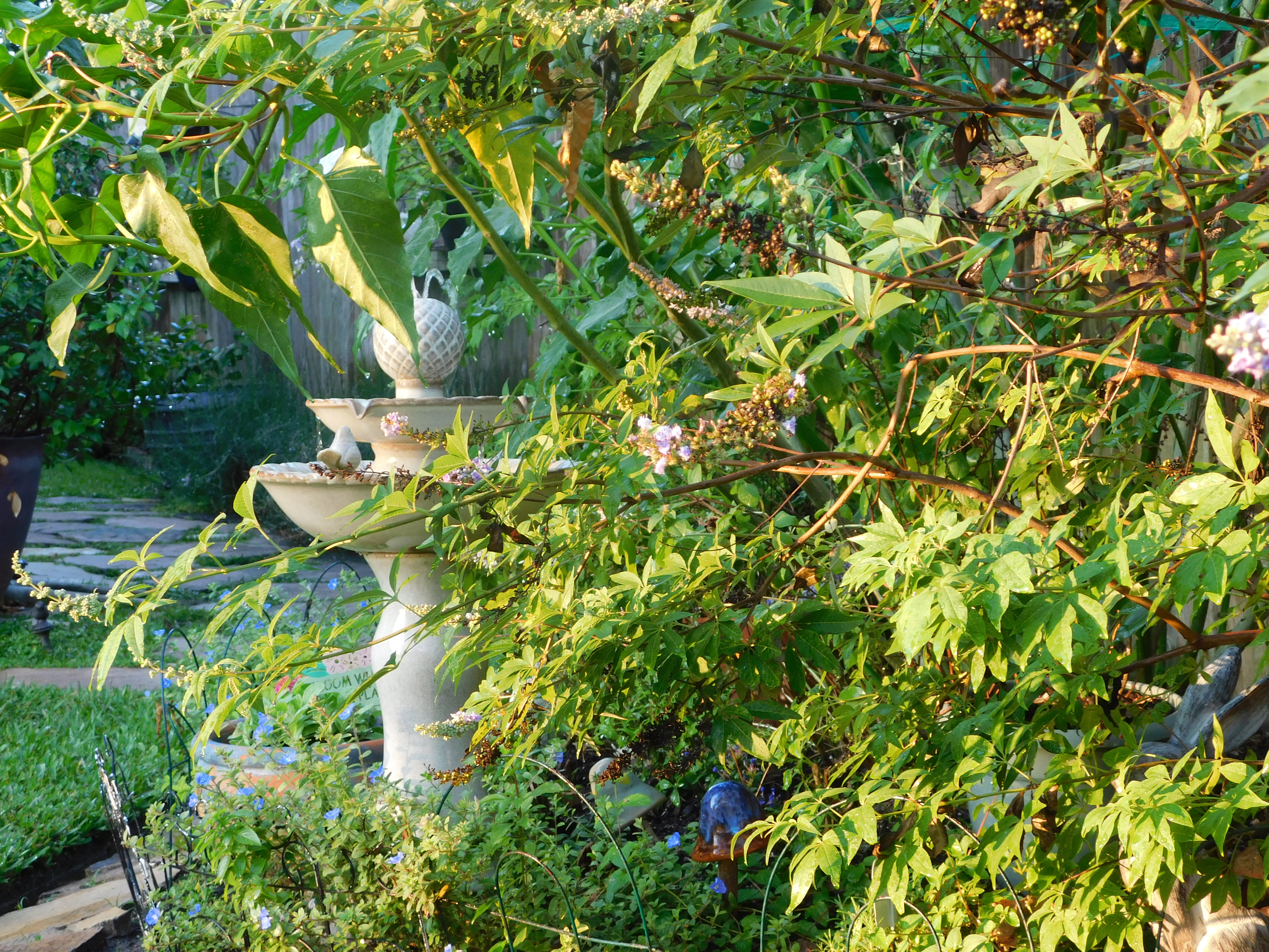 The Rose of Sharon Hibiscus is lovely and full of blooms right now. It was quiet for a few weeks with just a few blooms. But this week, it has put on a show, and the birds and bees are loving it!