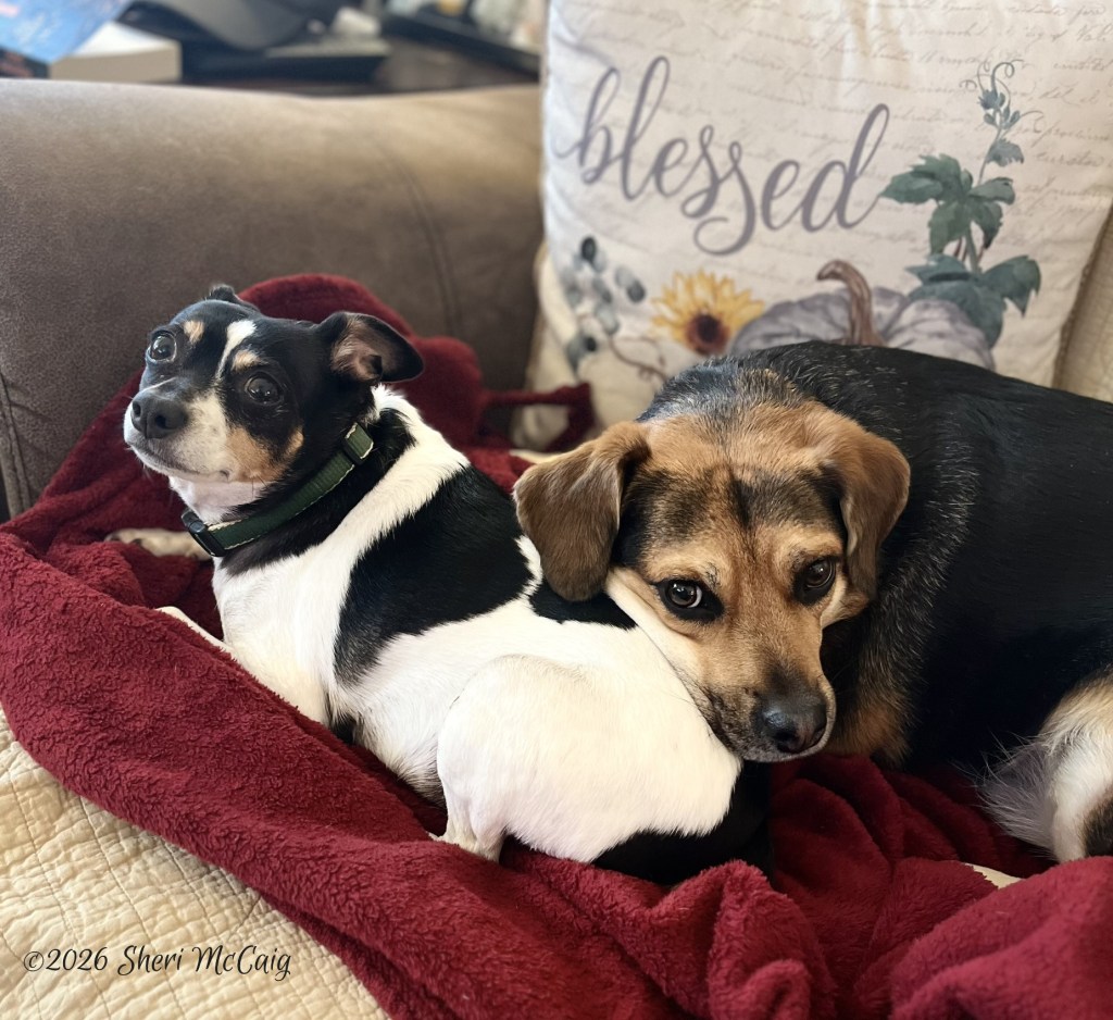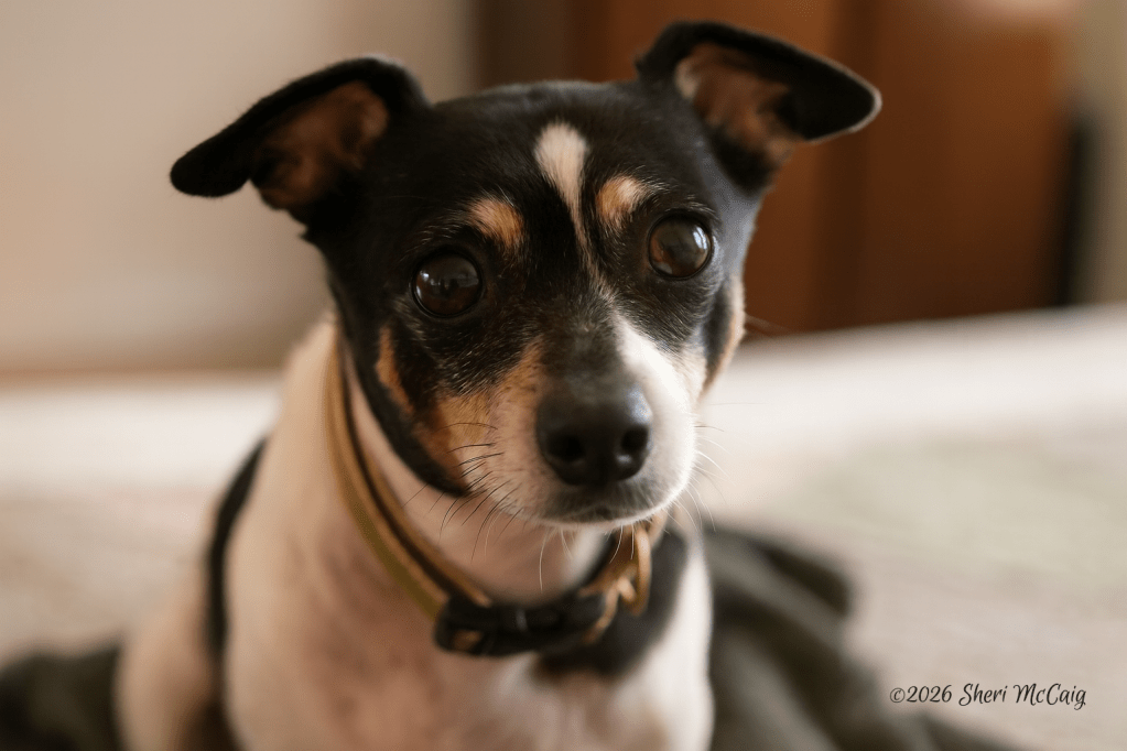 Coop is the territorial, but loving Rat Terrier in the group. He loves his dog pack and his human pack. He also loves to play with a tennis ball, as long as it has no fuzz on it, particularly if Elaine is playing with it! He is a prototypical lapdog, preferring to sit on a lap rather than anywhere else. He can be a good heater!