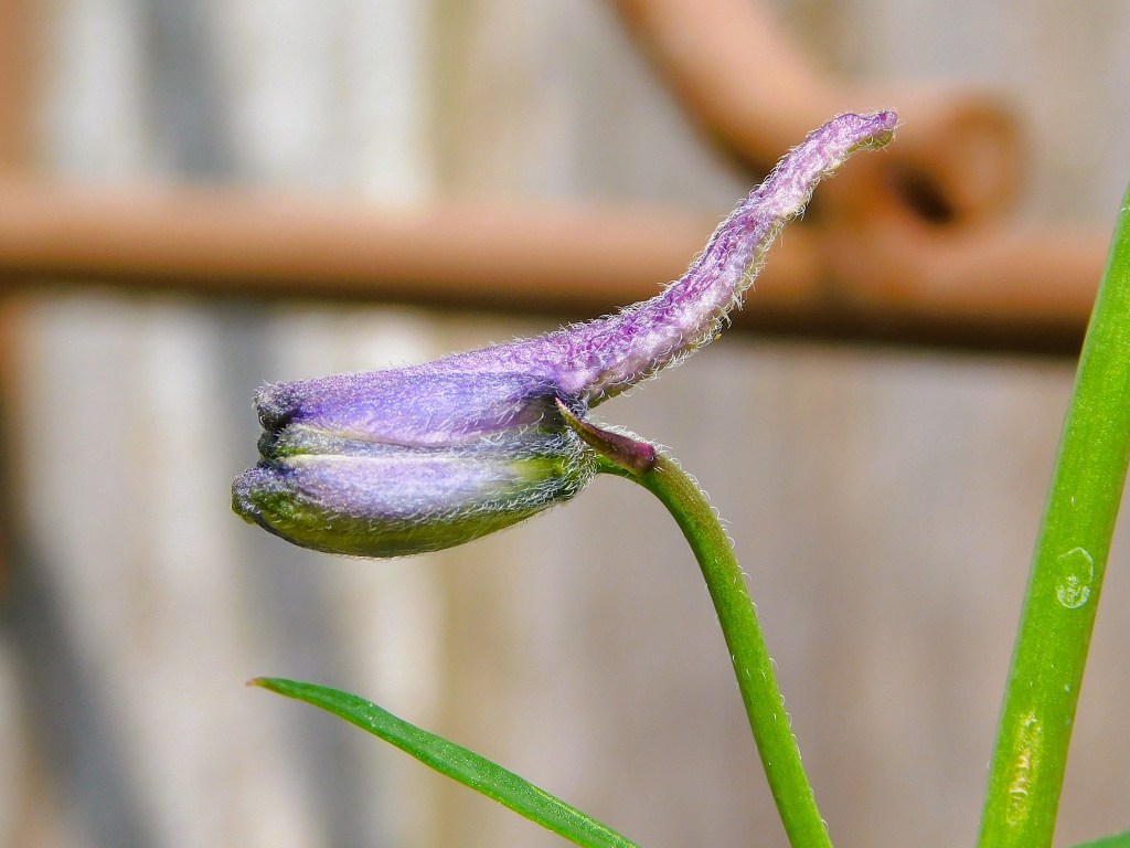 These Delphinium are new additions to the quiet wild, also. Like the Poppies, they are covered with tiny hairs. The bud’s shape is so unusual, a little bit like a scorpion’s curved tail. Nature is fascinating!