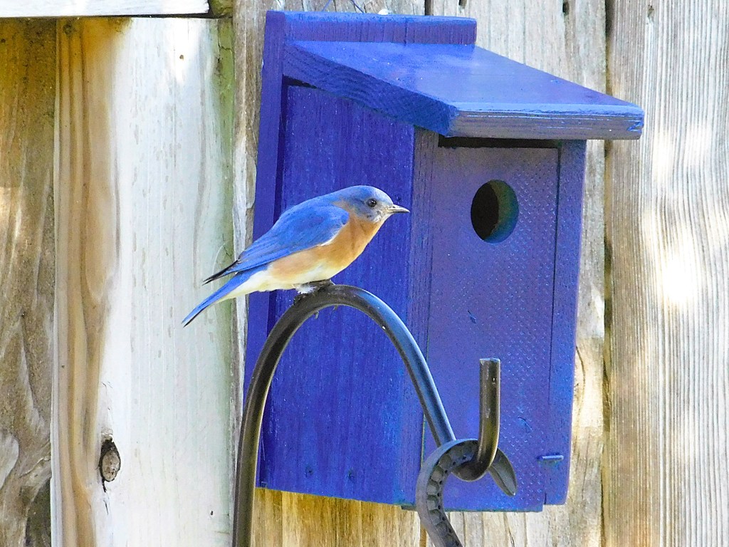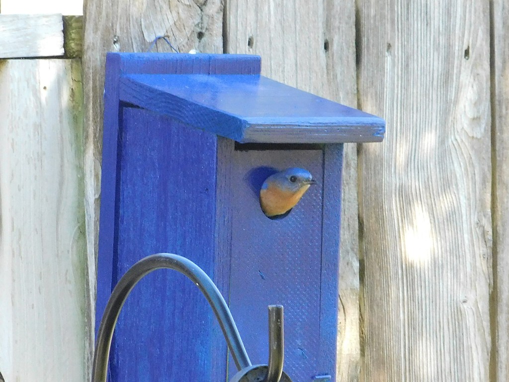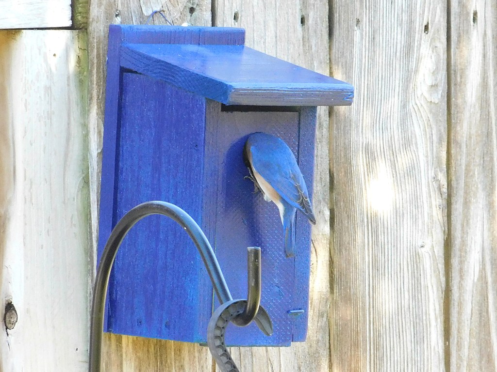 It is not just the plants that are preparing for spring. The Eastern Bluebirds have spent the last couple of weeks searching for a place to build their nest for another brood. One pair has chosen the bright blue birdhouse, a new addition to the birdhouse choices this year. As I have been cutting back plants, I have thrown some of the smaller twigs and stems in the flower beds for them to use as they build their nest. It is so much fun to watch them go into the little birdhouse hole with a branch to add to their nest. I look forward to watching another group of baby birds in the quiet wild!