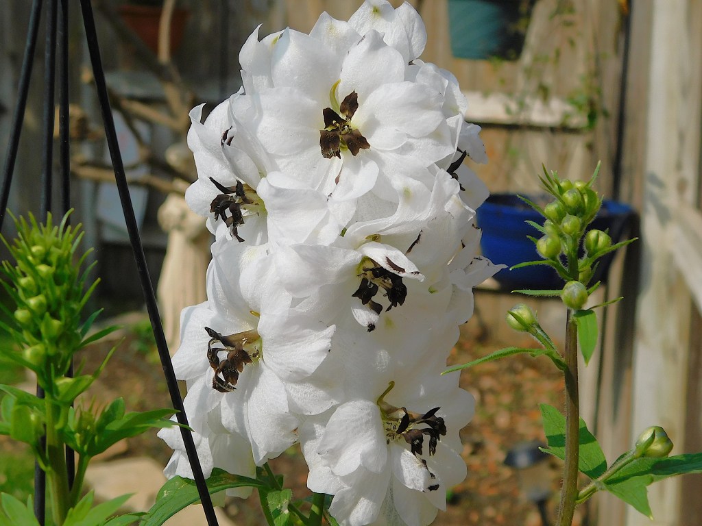 The white Larkspur is a showy plant with gorgeous feathery blooms stacked on top of each other.