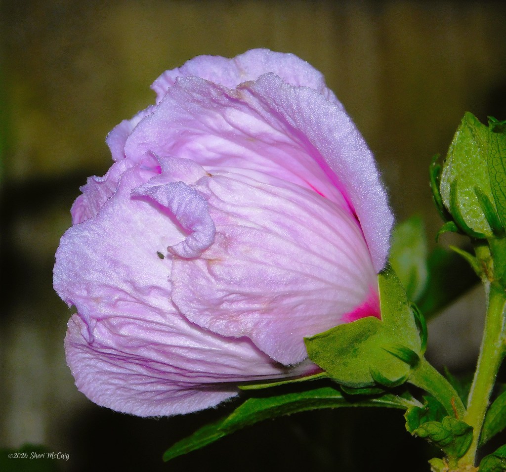 The plants have not been bested by the things of the air. They are starting to get showy, too. The first bloom on the Rose of Sharon Hibiscus seems to be glowing from the inside. Such a delicate bloom. I can’t wait for the bees to find these blooms. They love this plant and typically buzz around it all summer.