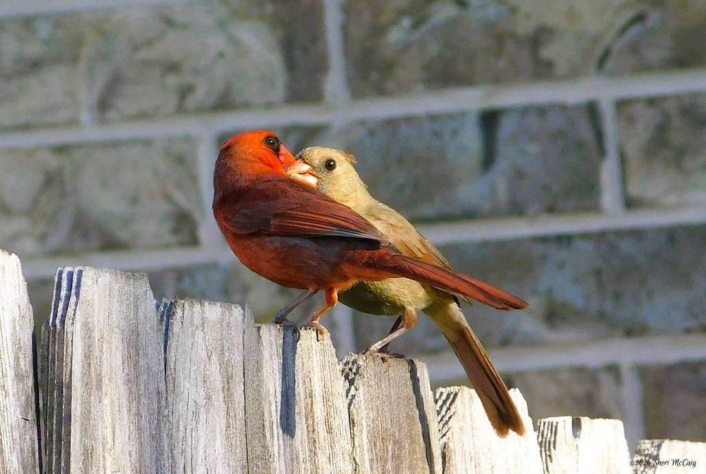 The quiet wild has been a favorite visiting site for a pair of Cardinals. They seem to be sharing a special moment in this image.