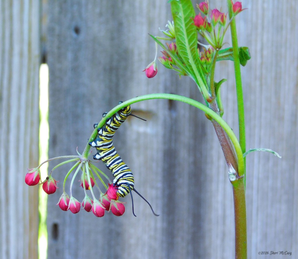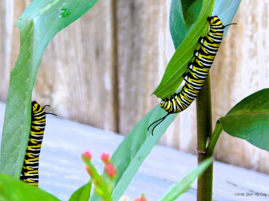 The Monarch butterflies got busy early. There were five or six caterpillars on the milkweed this week.