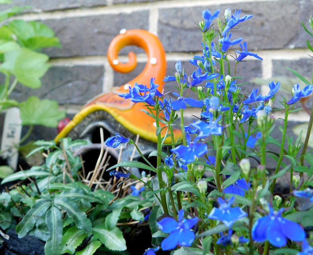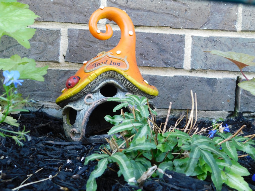 This has been a bit of a hodgepodge sort of post, including a bit of flora and fauna. I leave you with a little pic of Toad Inn behind the Lobelia, a small abode for the toads and frogs. All creatures need a place where they can hide or get out of the elements.